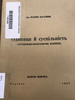 Одиниця й суспільність: сусшльно-філософічні нариси - Unity and society: social and philosophical essays